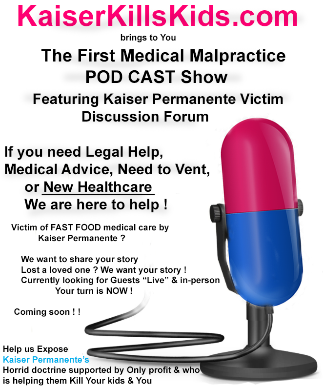 Everyone seems to have a Kaiser horror story. Here you can see how far it truly goes and why it happens, and most of all why you should Run for your Life, and that of your children, away from this “Fast-Food Medical Giant”.